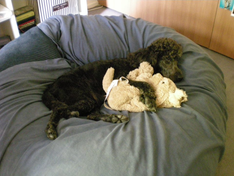 Lottte snoozing with puppy